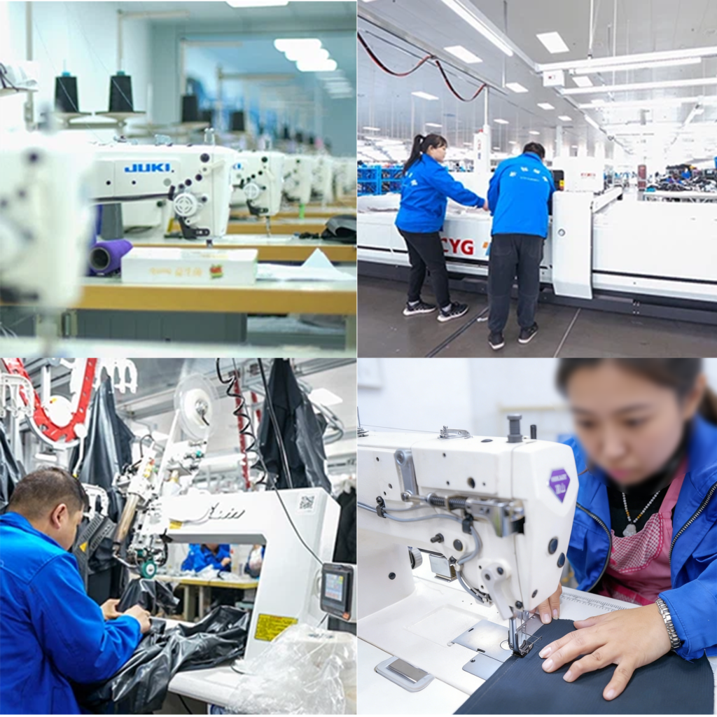 Yunyong Apparel owns two manufacturing bases near the city. One factory is equipped with 6 production lines and has more than 300 skilled workers; the other newly built in 2023 is fitted with a modern overhead conveyor production line and a digital management system, as well as advanced equipment such as automatic cutting tables and intelligent down filling rooms.